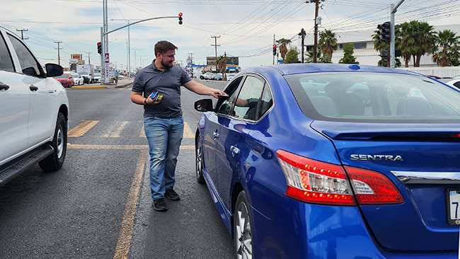 Cars stopped at intersections are a great place to hand out tracts!