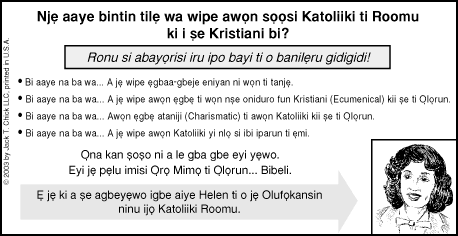 Description: Show Catholics that neither their good works nor their religion can save them.